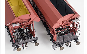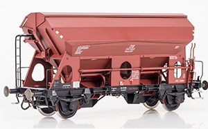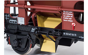 Tdg 934 - DB, Rahmen schwarz - Aufbau braun - Behälter innen und Schütten außen grünbeige (lebensmittelechter Innenanstrich) - mit Regenrinne Epoche IV |